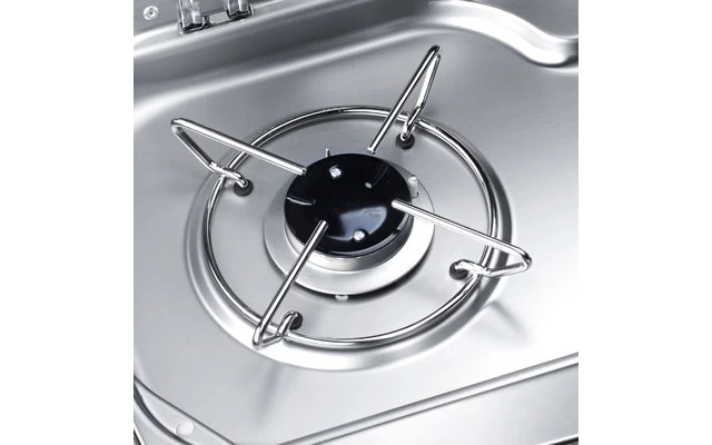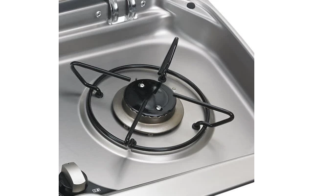 Die kompakte Dometic HSG 2370 R ist eine komfortable Kombination aus 2-flammigem Gaskochfeld und Spüle für Wohnmobile und Wohnwagen, bei der die Spüle links vom Kochfeld untergebracht ist. Diese clever entworfene Einheit passt problemlos in denKüchenbereich, ohne dabei zu viel Platz einzunehmen, und besitzt eine Abdeckung aus temperaturbeständigem Sicherheitsglas, die geschlossen als zusätzliche Arbeitsfläche dient. Das Kochfeld verfügt über ein Sicherheitszündsystem und die verchromten Herdaufsätze lassen sich zur einfacheren Reinigung abnehmen.