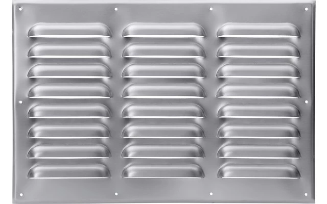 Kiemenblech aus eloxiertem Aluminium. Mit mehreren Kiemenreihen. Verstärkter Rand und Anschraubbohrungen.
