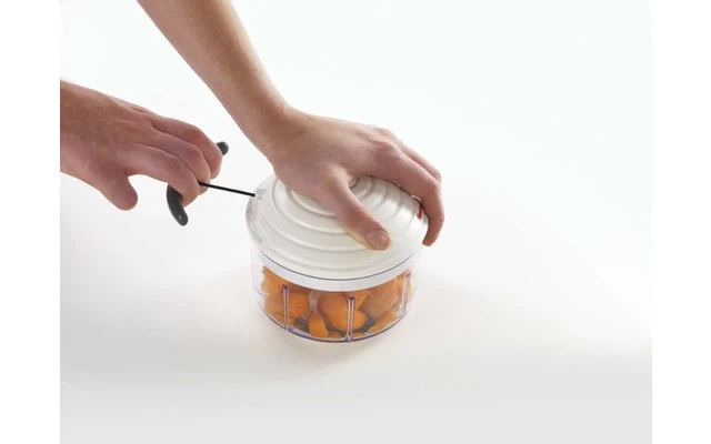 Die Revolution in der Küche! Gemüse- und Obstzerkleinerer mit leichtgängigem Zugmechanismus. Auch zum Mixen und Rühren von Soßen und Dips geeignet. So einfach war Zerkleinern noch nie.