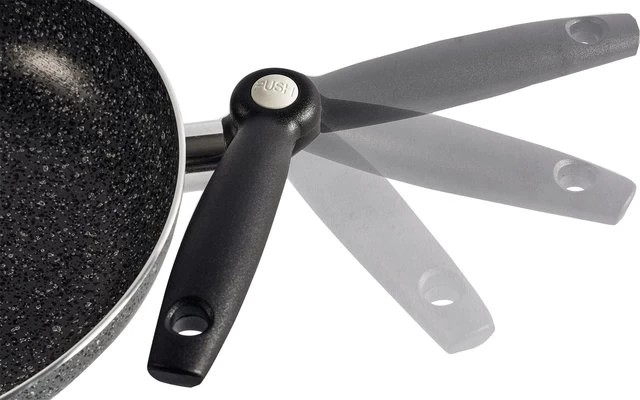 Aluminium Pfanne in Granitoptik. Innen mit hochwertiger Antihaftbeschichtung. Besonders platzsparend durch den klappbaren Griff.