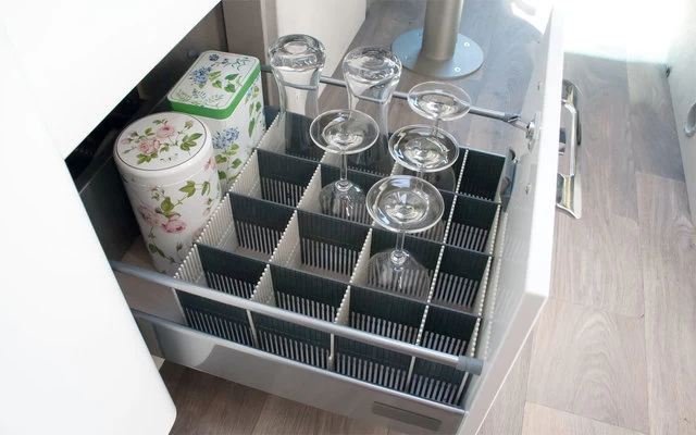 Die flexiblen Kunststoff-Stauleiste bieten optimalen Trennschutz für verschiedene Artikel und stabilisieren ihre Gegenstände bruchsicher und rutschfest. Durch die enge Rasterung von 5mm können verschiedene Artikel optimal auf Reisen bruchsicher stabilisiert werden. Flexibel, unbegrenzt erweiterbar, einfache Handhabung – einfach zusammenstecken, passgenau zuschneidbar. Perforation alle 3 mm, abwaschbar.