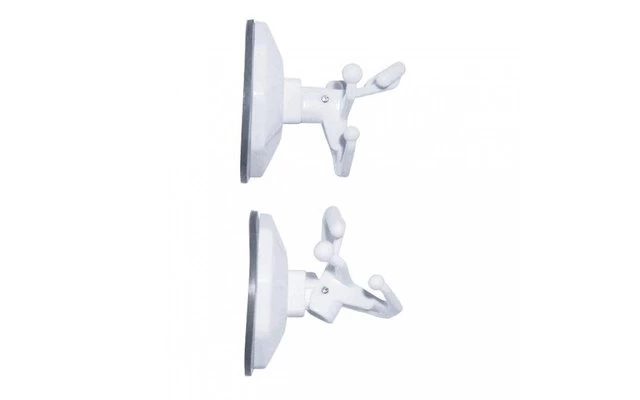 Multifunktionell mit mehreren Aufhängern. Einfachste Montage durch Spezialsaugnapf, der sich auf glattem Untergrund durch Umlegen des Hakens festsaugt. Preis pro Stück.