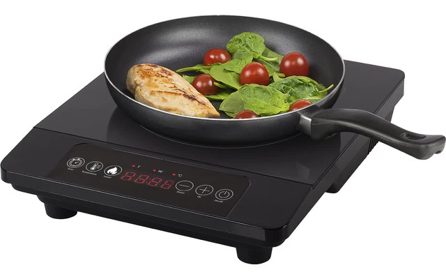Das Gerät erkennt automatisch, ob der verwendete Topf geeignet ist. Mit gehärteter Glasplatte.