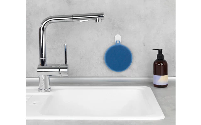 Bei Nichtgebrauch können die Schwämme in den Trendfarben Blau und Grau platzsparend und griffbereit mit dem Saugnapf oder der Aufhänge-Öse in Reichweite aufgehängt werden.