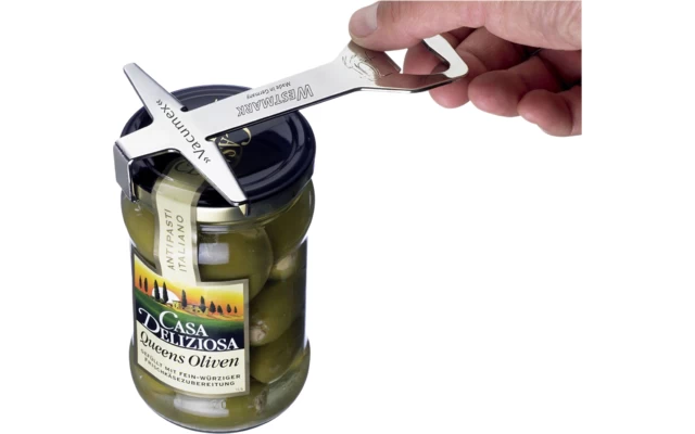 Vielzwecköffner zum Lösen des Vakuums bei Marmeladen- und Einmachgläsern, Schraubdeckel-Lifter für Deckelhöhen bis 1,9 cm, mit Kapselheber zum Öffnen von Flaschen mit Kronkorken.